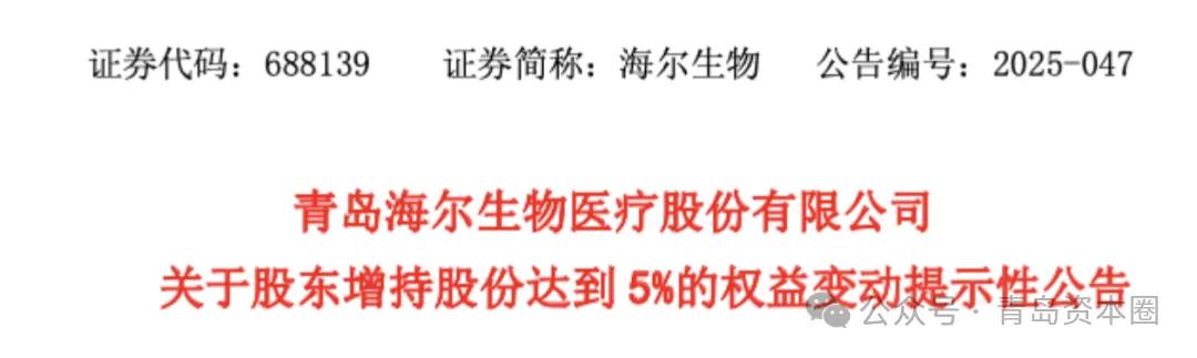 青岛资本圈对此作了详细分析,具体内容见以下链接:海尔生物获国资股东增持股份达5%