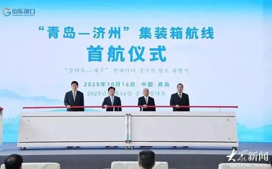 10月16日,青岛-济州集装箱航线首航仪式在青岛邮轮母港举行。山东省委书记林武、韩国济州道知事吴怜勋,青岛市委书记曾赞荣,韩国驻青岛总领事柳昌秀共同启动首航。