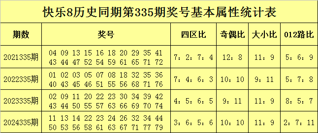 万妙仙快乐8历史同期第335期奖号基本属性分析