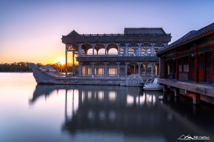 3、颐和园:利用昆明湖、万寿山为基址,以杭州西湖风景为蓝本,汲取江南园林的设计手法和意境而建成的皇家园林颐和园,是目前保存得最完整的一座皇家行宫御苑。郁郁葱葱的树丛掩映着黄的、绿的琉璃瓦屋顶和朱红的宫墙。一座八角宝塔形的三层建筑耸立在半山腰上,是中国传统特色的最好证明。