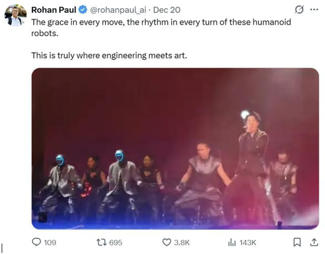 有网友赞叹,“这些人形机器人的每一个动作的优雅,每一个转身的节奏,这才是真正的工程与艺术的融合。”↓