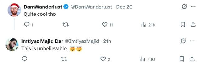 还有网友感叹,“真是太疯狂了。科技发展如此之快——想象一下几年后现场表演将会有多么不同。”↓